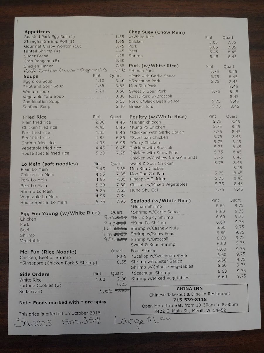 The menu at China Inn offers a straightforward, comforting selection of classic Chinese dishes that fit well with its unpretentious, casual atmosphere. Whether you're stopping by for a quick lunch or settling in for a relaxed dinner, you'll find familiar and satisfying options that feel like a warm, homemade meal.